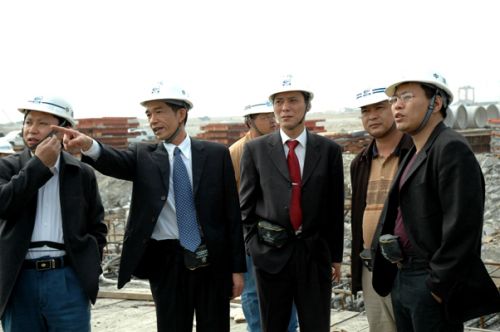 該工程合同工期三年半,需施打3425根大直徑鋼管樁和大量的樁內(nèi)嵌巖、錨錠施工,要完成碼頭基槽、駁岸區(qū)及港池航道挖泥2000多萬立方米,施工技術(shù)標(biāo)準(zhǔn)以英國(guó)標(biāo)準(zhǔn)為主。項(xiàng)目部按照集團(tuán)和局領(lǐng)導(dǎo)安全、優(yōu)質(zhì)、高效地按期完成施工任務(wù)的要求,制訂了"講誠(chéng)信、講和諧、創(chuàng)效益、創(chuàng)品牌"的工作目標(biāo)和措施,高效配置資源,嚴(yán)密組織,精心施工。自去年3月1日開工至今,完成了三分之一的鋼管樁施打、四分之一的挖泥施工和400米碼頭縱橫梁澆注,其它工序也按計(jì)劃進(jìn)行,形成了1000多米的流水作業(yè)線,完成施工產(chǎn)值5.8億元?,F(xiàn)在,項(xiàng)目部全體員工士氣高昂,決心為企業(yè)發(fā)展做出更大貢獻(xiàn)!圖為副局長(zhǎng)羅寬榮、中港副總經(jīng)理莫文賀到現(xiàn)場(chǎng)慰問員工、指導(dǎo)工作。