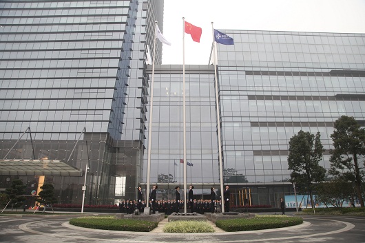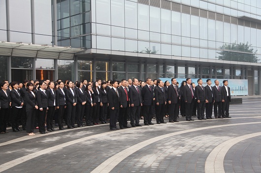 伴隨著《國(guó)歌》、《四航之歌》的鏗鏘旋律,五星紅旗和中國(guó)交建司旗在公司6名旗手護(hù)衛(wèi)下徐徐升起,本部全體員工肅立仰望,向五星紅旗和中國(guó)交建司旗行注目禮,自豪和神圣感油然而生。