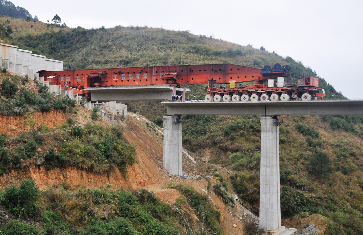 廣南制梁場由二公司承建,共承擔(dān)104榀箱梁預(yù)制、260榀箱梁架設(shè)的任務(wù),是云桂鐵路云南段第一個、云南省歷史上第二個通過認(rèn)證并投產(chǎn)的制梁場。260榀箱梁分布于董弄1號雙線特大橋至四十里長沖雙線大橋四個分部(含中鐵十局四標(biāo)一分部)共計30座大中橋梁。箱梁架設(shè)任務(wù)全部完成,標(biāo)志著云桂項目部又一重大安全危險源的解除,同時為后續(xù)鋪軌奠定基礎(chǔ)。