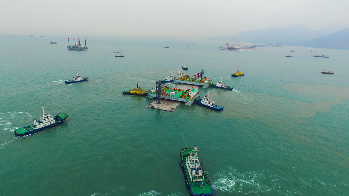 港珠澳大橋最后一節(jié)巨型沉管安裝成功