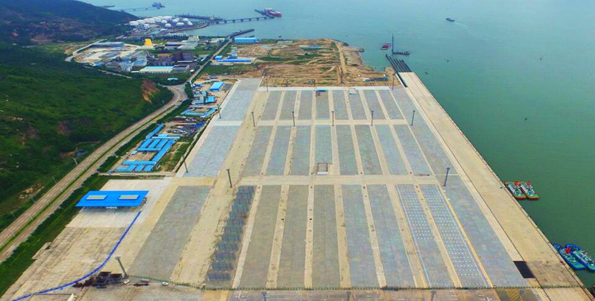 該工程2號(hào)泊位為5萬(wàn)噸級(jí)集裝箱碼頭工程,結(jié)構(gòu)分為3個(gè)分段,岸線長(zhǎng)205.92米,寬42.2米;3號(hào)泊位為5萬(wàn)噸級(jí)集裝箱碼頭工程,結(jié)構(gòu)共分為5個(gè)分段,岸線長(zhǎng)343.2米,寬42.2米;道路堆場(chǎng)及公用設(shè)施工程(第一階段)包括后方相對(duì)應(yīng)的H區(qū)、I區(qū)、J區(qū)的配套設(shè)施,道路堆場(chǎng)總面積25.37萬(wàn)平方米。