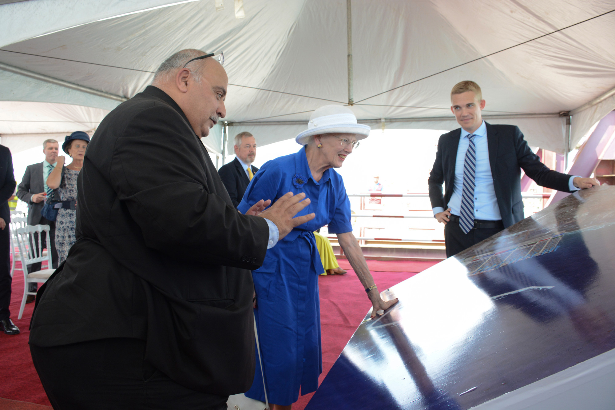 11月25日,丹麥女王瑪格麗特二世在業(yè)主MPS CEO Mohamed Samara的陪同下視察加納特碼新集裝箱碼頭工程項(xiàng)目。