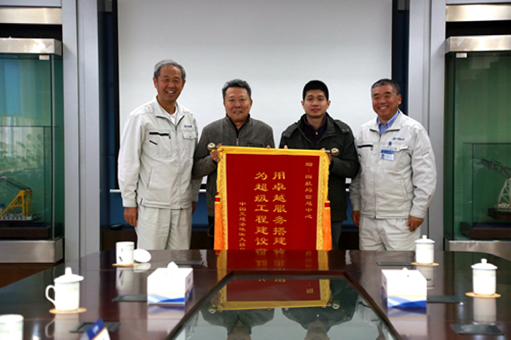 2月9日,中交港珠澳大橋島隧項(xiàng)目部總經(jīng)理林鳴一行到四航局信息中心授予錦旗,感謝其為港珠澳大橋島隧工程建設(shè)做出的突出貢獻(xiàn),四航局總經(jīng)理李惠明出席了授旗儀式。