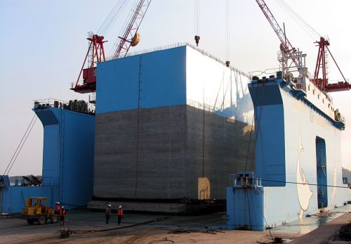 首件重型沉箱的成功出運(yùn)及安裝,為其余9件沉箱的出運(yùn)安裝奠定了基礎(chǔ)。圖為重達(dá)2940噸巨型沉箱順利搬上"防城港"號(hào)出運(yùn)。(劉潔 曾中偉 黃和結(jié) 李小明)