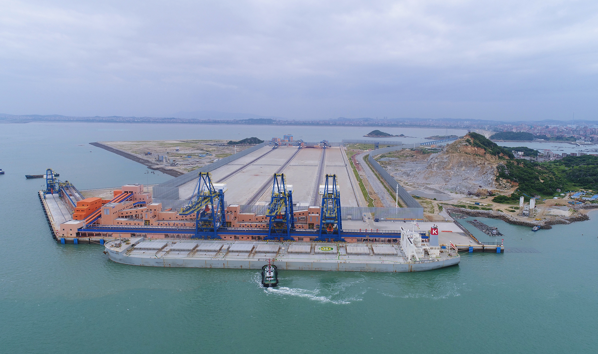 8月24日,四航局羅嶼9號(hào)10號(hào)泊位碼頭成功靠泊25萬(wàn)噸級(jí)大型鐵礦石船。