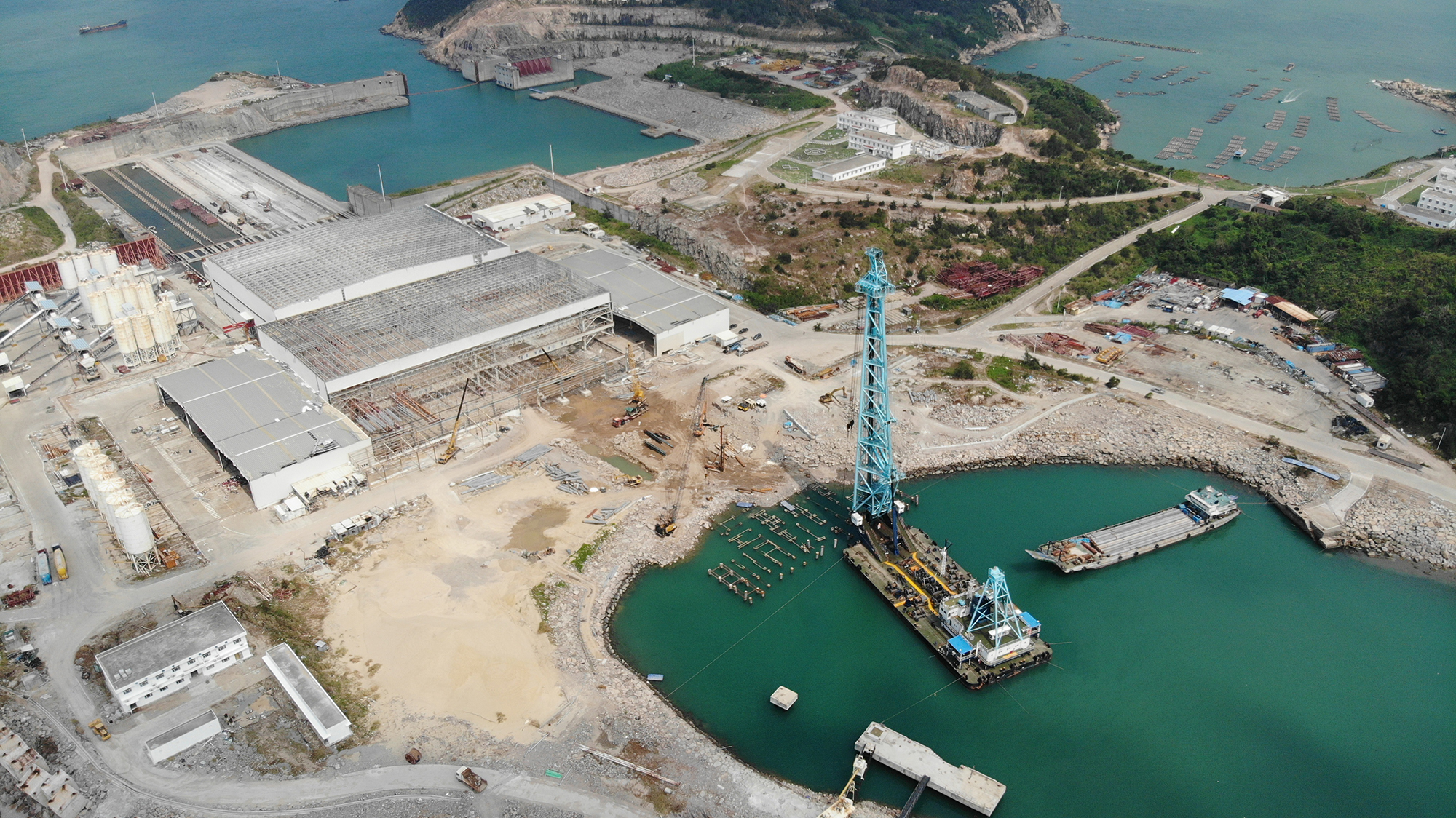 海上樁基施工是建設(shè)沉管預制場最基礎(chǔ)的分項工程之一,該分項直徑800PHC樁總工程量為158根,樁長27至38米,其中直樁90根,4:1、10:1的斜樁各34根。目前,項目碼頭夾樁、樁芯砼、陸上PHC樁、灌注樁的施工、廠房改造、軌道梁澆注及供電系統(tǒng)、排水系統(tǒng)、深淺塢改造系統(tǒng)等相關(guān)工作正全面推進。