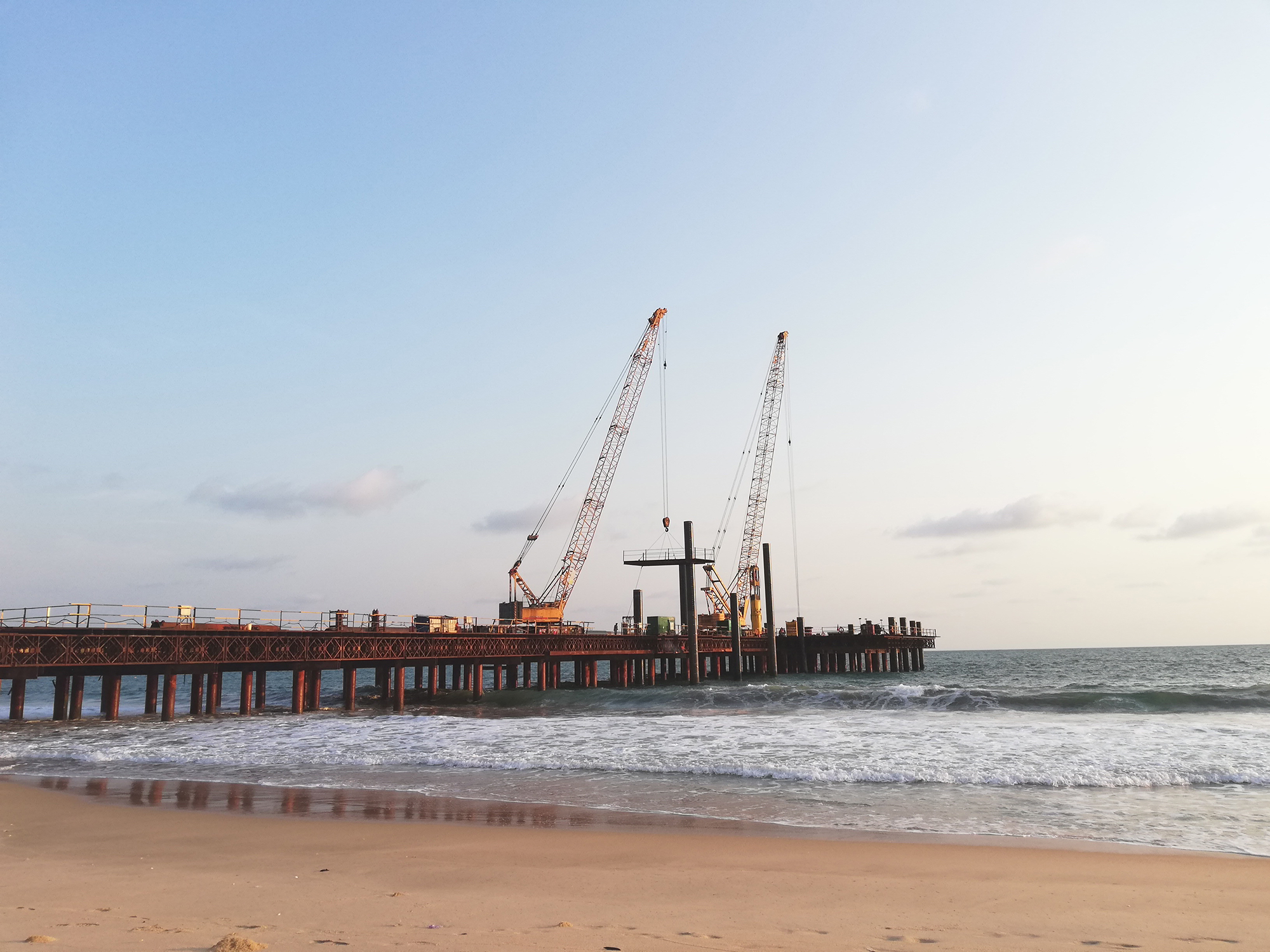 尼日利亞丹格特?zé)捰凸緱蝽?xiàng)目主要施工內(nèi)容包括棧橋、登陸平臺(tái)、膨脹補(bǔ)償平臺(tái)、接岸結(jié)構(gòu)等勘察設(shè)計(jì),棧橋、登陸平臺(tái)、膨脹補(bǔ)償平臺(tái)、接岸結(jié)構(gòu)施工以及油管溝槽的開挖和回填等。
