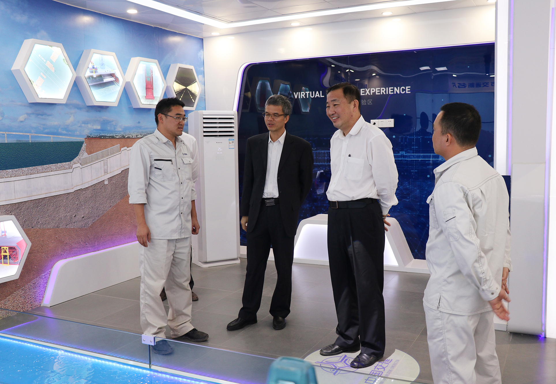 梁卓仁一行先后來到項目天河工區(qū)、海珠工區(qū)現(xiàn)場,仔細察看了端頭圍堰、沉箱預(yù)制、基坑支護、干塢開挖等工程分項,了解了工程進度、合同履約、合作隊伍管理等情況。他聽取了項目部關(guān)于項目公司工作開展、總承包工程實施進展、項目黨建文化建設(shè)的匯報,對項目現(xiàn)場標準化建設(shè)、安全文明施工管理工作表示肯定。他來到項目部展廳,參加展廳啟用儀式,對展廳構(gòu)思、設(shè)計和直觀化多媒體展示等方面同時予以了肯定。梁卓仁對項目部展現(xiàn)出的良好精神面貌和四航人工匠精神的工作狀態(tài)表示滿意。