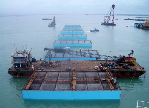 該工程一座長330米的10萬噸級煤碼頭需預(yù)制安裝沉箱10件,單件重達2938噸。面對沉箱預(yù)制、浮運、安裝安全風(fēng)險大、施工組織難度高的挑戰(zhàn),防城港項目部制定科學(xué)合理的施工方案,做好技術(shù)安全交底,制定"沉箱出運安裝應(yīng)急預(yù)防措施","四航防城港"號提前到現(xiàn)場進行試潛,并認真組織好典型施工,于6月26日安全優(yōu)質(zhì)高效完成了10個重型沉箱的出運安裝任務(wù)。