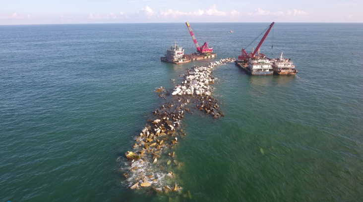 近日,四航局廣東石化原油碼頭項(xiàng)目完成0-200里程段防波堤200米出水目標(biāo),為項(xiàng)目后續(xù)施工開展奠定了堅(jiān)實(shí)基礎(chǔ)。