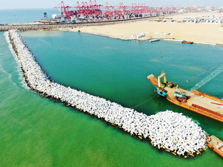 7月24日,由中國港灣總承包,四航局負責施工的科倫坡港口城防波堤、吹填和一期基礎設施工程項目完成內(nèi)防波堤扭王字塊安裝,標志著該項目內(nèi)防波堤完工。
