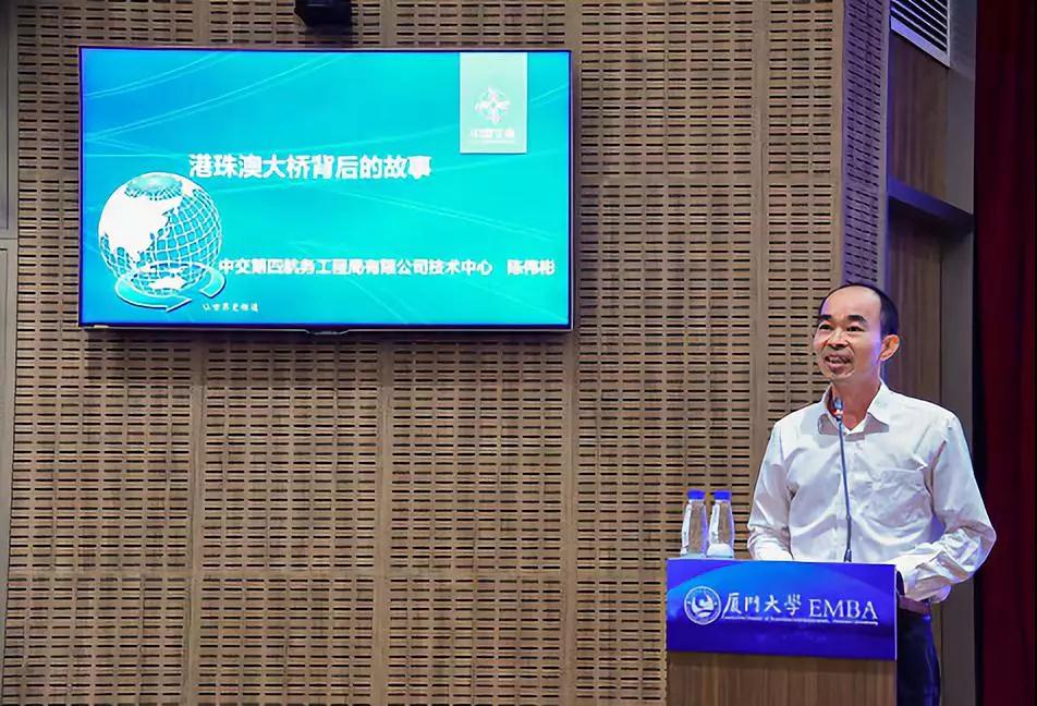 陳偉彬通過(guò)講述港珠澳大橋沉管預(yù)制廠 “煙頭無(wú)一下地”、數(shù)百設(shè)備7年一塵不染、混凝土無(wú)一裂縫等故事,用細(xì)微的事例以及數(shù)字串聯(lián),展示四航人一絲不茍、精益求精的建設(shè)實(shí)踐,展現(xiàn)了港珠澳大橋建設(shè)者以高度責(zé)任感和使命感,澆注最滿意的世紀(jì)工程的自覺(jué)擔(dān)當(dāng)。他還結(jié)合港珠澳大橋建設(shè)的精神傳承,講述了四航建設(shè)者如何“重整行裝再出發(fā)”,開(kāi)創(chuàng)了8萬(wàn)噸臺(tái)車運(yùn)輸系統(tǒng)、智能澆注系統(tǒng),為建設(shè)深中通道貢獻(xiàn)四航智慧。