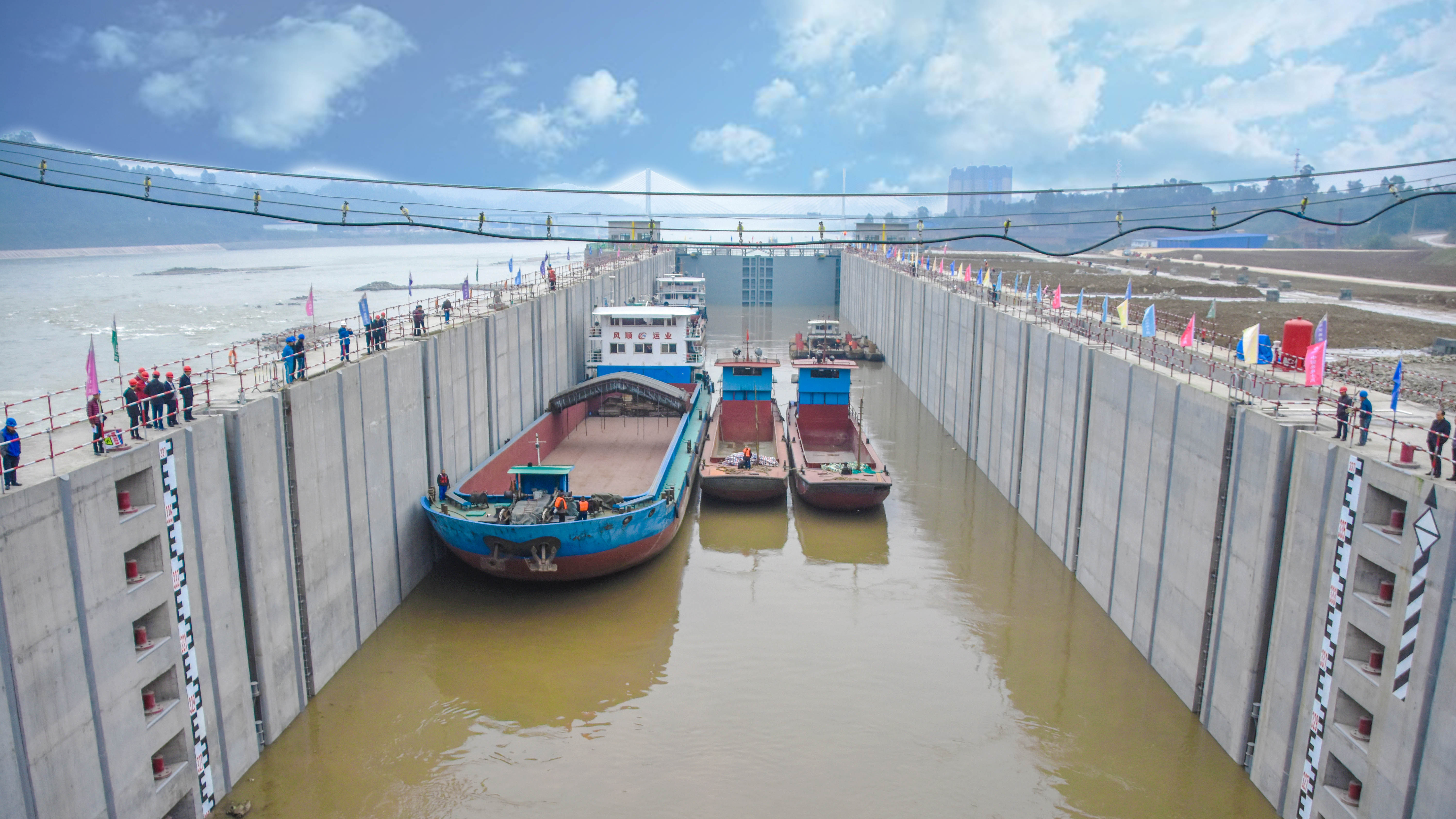 該工程位于岷江下游樂山市犍為縣境內(nèi),長(zhǎng)210米,寬34米。船閘通航后,岷江樂山至宜賓段將可長(zhǎng)年通行千噸級(jí)船舶,最大通航船舶3000噸級(jí)。自2017年底工程開工建設(shè)以來,犍為項(xiàng)目建設(shè)團(tuán)隊(duì)通過精心組織,科學(xué)施工,克服了工期緊、工程量大、施工強(qiáng)度高、洪水災(zāi)害等困難,圓滿完成了上下閘首施工、船閘工程無水階段驗(yàn)收、船閘試通航等階段性目標(biāo)。