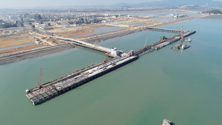 四航局中化泉州乙烯項(xiàng)目位于福建省湄洲灣港斗尾港區(qū)外走馬埭作業(yè)區(qū),主要建設(shè)3個5000噸級化學(xué)品液體散貨泊位和2個5000噸級通用泊位,項(xiàng)目建成后將為乙烯及煉油改擴(kuò)建項(xiàng)目提供急需和便捷的原料產(chǎn)品水路運(yùn)輸大通道,對乙烯項(xiàng)目乃至泉惠工業(yè)園區(qū)邁向世界一流煉化一體化園區(qū)具有重要意義。