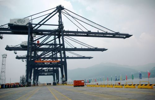 在15個(gè)月里,鹽田項(xiàng)目部共施打1987根鋼管樁(總長達(dá)7.3萬米),挖泥1296萬立方米,拋填各類石料232萬立方米,現(xiàn)澆混凝土達(dá)6萬立方米;工程鋼材用量達(dá)6萬8千噸。在趕工高峰期,一天要完成6萬立方米挖泥量,一天創(chuàng)造出200多萬元施工產(chǎn)值,單月產(chǎn)值最高達(dá)1.2億元。 圖為碼頭大景。(張曉東)