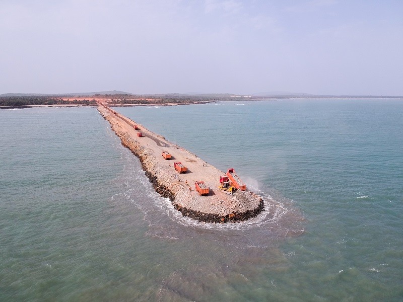 該項(xiàng)目自2019年12月1日開工以來,面對現(xiàn)場條件復(fù)雜、工期緊、資源匱乏、當(dāng)?shù)貏诠ぜ夹g(shù)水平以及安全質(zhì)量意識薄弱等諸多不利因素,精心部署,合理調(diào)配資源,充分發(fā)揮項(xiàng)目管理和技術(shù)上的優(yōu)勢,打造一支“能打仗,打勝仗”的項(xiàng)目團(tuán)隊,克服重重困難,在跟進(jìn)施工進(jìn)度的同時嚴(yán)把安全質(zhì)量關(guān)。此外,受“新冠肺炎”疫情影響的非常時期,項(xiàng)目部迅速有效地組織現(xiàn)有資源,按照中國和幾內(nèi)亞相關(guān)要求規(guī)定做好疫情防控,同時按業(yè)主要求和總體進(jìn)度安排做好項(xiàng)目建設(shè),確?!皟墒肿?,兩不誤”,保質(zhì)保量實(shí)現(xiàn)引堤施工節(jié)點(diǎn)目標(biāo),在項(xiàng)目所有參加單位中樹立了標(biāo)桿,起到了示范作用,為后續(xù)的鋁土礦泊位施工奠定了基礎(chǔ)。