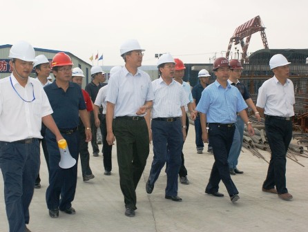 9月5日,上海市副秘書長尹弘在上海市建委孫主任、市規(guī)劃設計院等有關職能部門領導、京滬高鐵指揮部拉有玉指揮長等陪同下到四航局京滬高鐵嘉定制梁場檢查指導工作。