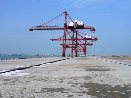 ??诟鄱诖a頭工程位于海南省秀英港區(qū)內(nèi),2006年8月10日開工,為交通部重點(diǎn)工程。工程包括與一期工程銜接的過渡段(結(jié)構(gòu)按1萬噸級設(shè)計(jì))長196米;兩個(gè)三萬噸級集裝箱泊位(結(jié)構(gòu)按5萬噸級設(shè)計(jì))總長590米;直立式南護(hù)岸(兼靠豪華郵輪)長170米;斜坡式東、北、西護(hù)岸總長2835米;以及相應(yīng)的港口配套設(shè)施。
