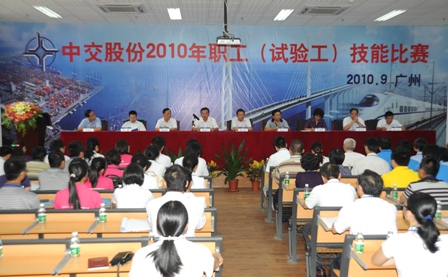 9月8日至9日,中交股份2010年職工(試驗(yàn)工)技能比賽在廣東交通職業(yè)技術(shù)學(xué)院隆重舉行。中交股份副總裁、黨委副書記楊力強(qiáng)出席開幕式并作重要講話,中交股份工會(huì)副主席石建波,人力資源一部副總經(jīng)理任璦琴,團(tuán)委書記趙鵬和中交股份評(píng)委以及中交股份10個(gè)參賽隊(duì)的領(lǐng)隊(duì)和選手共80多人參加了本次活動(dòng)。四航局董事長、黨委書記梁卓仁,紀(jì)委書記、工會(huì)主席肖干生出席了該項(xiàng)活動(dòng)。