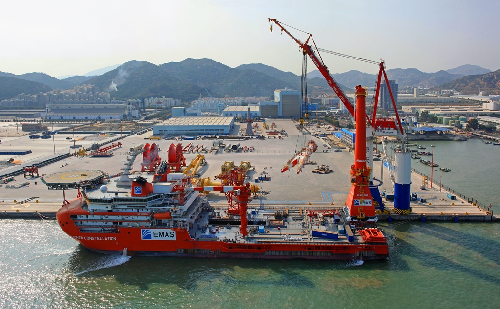 該碼頭配備了有“亞洲第一吊”之稱,起吊能力達2400噸的移動式高空吊,吊機在移動行走時裝配荷載大大超過常規(guī),這對碼頭施工水準是一大挑戰(zhàn)。